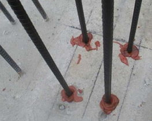 植筋是指在混凝土梁、板、柱、牆體等基材上鑽孔,待清孔完畢,丙酮清洗後注入高強植筋膠,再插入鋼筋,膠固後將鋼筋與基材粘接為一體,是加固補強行業較常用的一種建築技術。