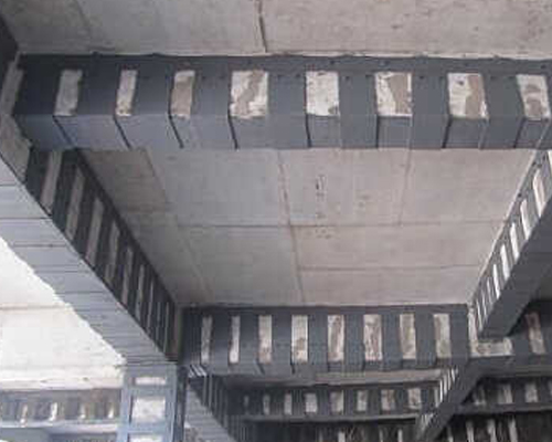 鋼筋混凝土受彎構件粘鋼加固是在構件承受力不足區段(正截麵受拉區、正截麵受壓區或斜截麵)表麵粘貼鋼板,這樣可提高被加固構件的承載力,且施工方便。